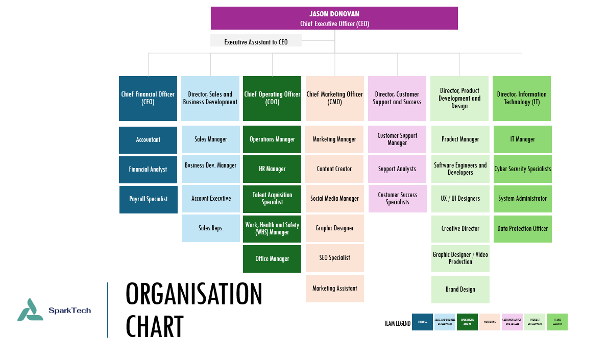 As the Chief Executive Officer (CEO) of SparkTech, Jason Donovan oversees the overall strategic direction of the company, ensuring alignment with its vision to innovate and deliver cutting-edge technology solutions. He leads high-level decision-making and establishes key partnerships to drive business growth. The CEO is also responsible for managing the company’s leadership team and ensuring the business remains financially viable and competitive in the tech industry.